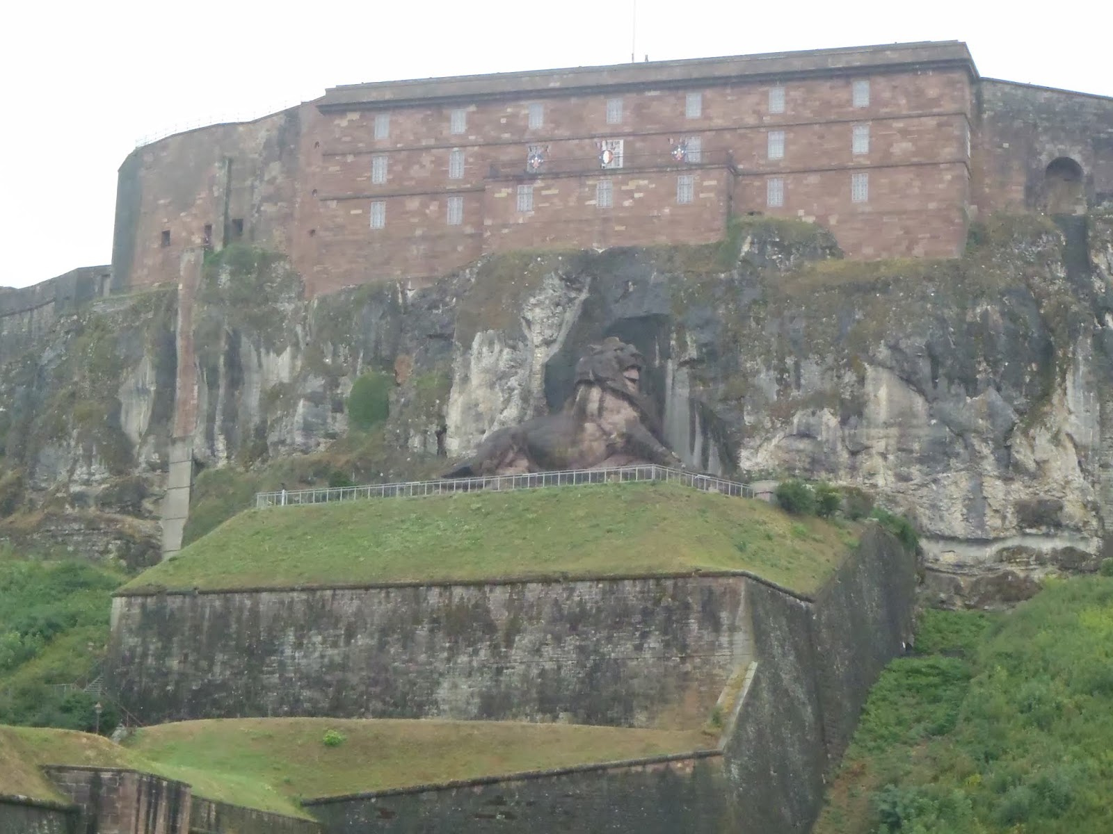 Je quitte la voie verte à Essert pour rejoindre la D 19. J’ai une simple peur que ce canal fortement abandonné n’ai pas de pont me permettant de rejoindre Belfort. Ma carte est illisible et je préfère assurer plutôt que d’être obligé de faire demi tour. Enfin je rentre dans Belfort. Enfin je vais voir le Lion. Je fais un petit tour à la gare, j’ai un train par heure pour Mulhouse. Je parts à l’assaut de la Citadelle.