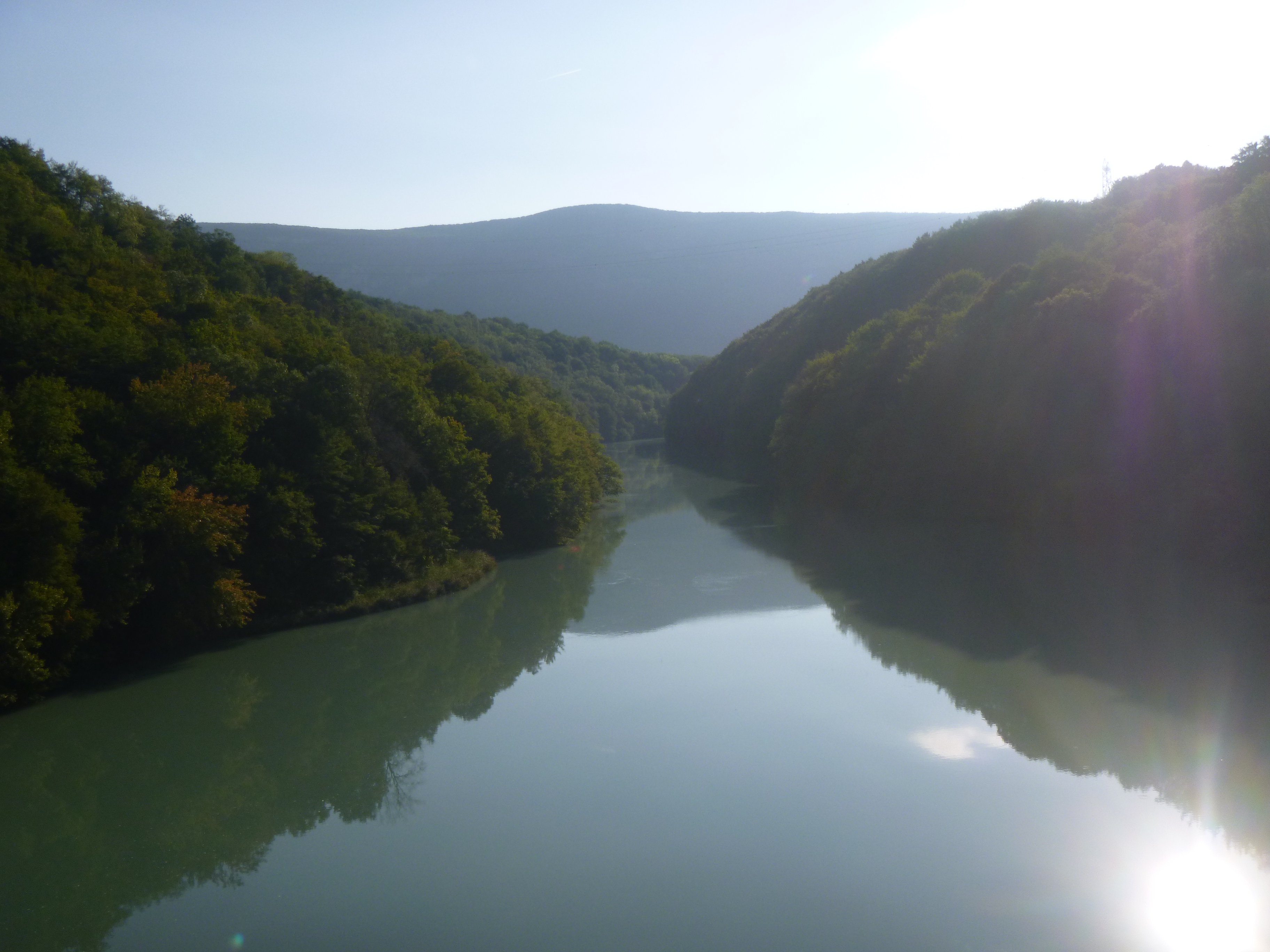nous traversons la rivière de La Valserine direction de Genève, Gex, commençons